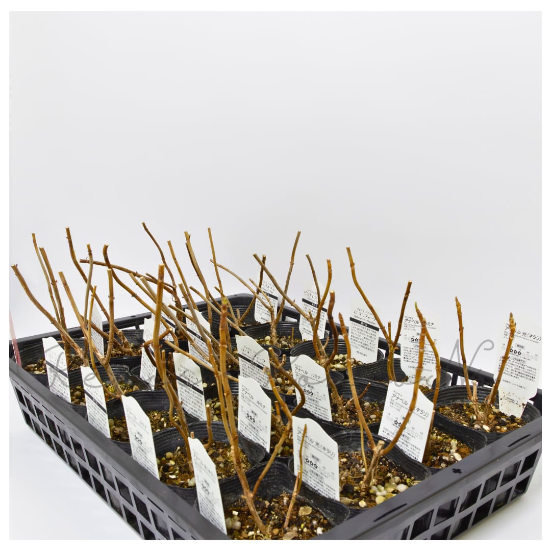 ・植物は日々成長しますので、ご購入のタイミングで、花芽なし、切り戻し後、落葉後の苗での発送となることもございます。予めご了承ください。