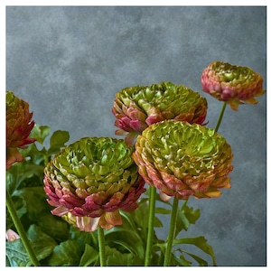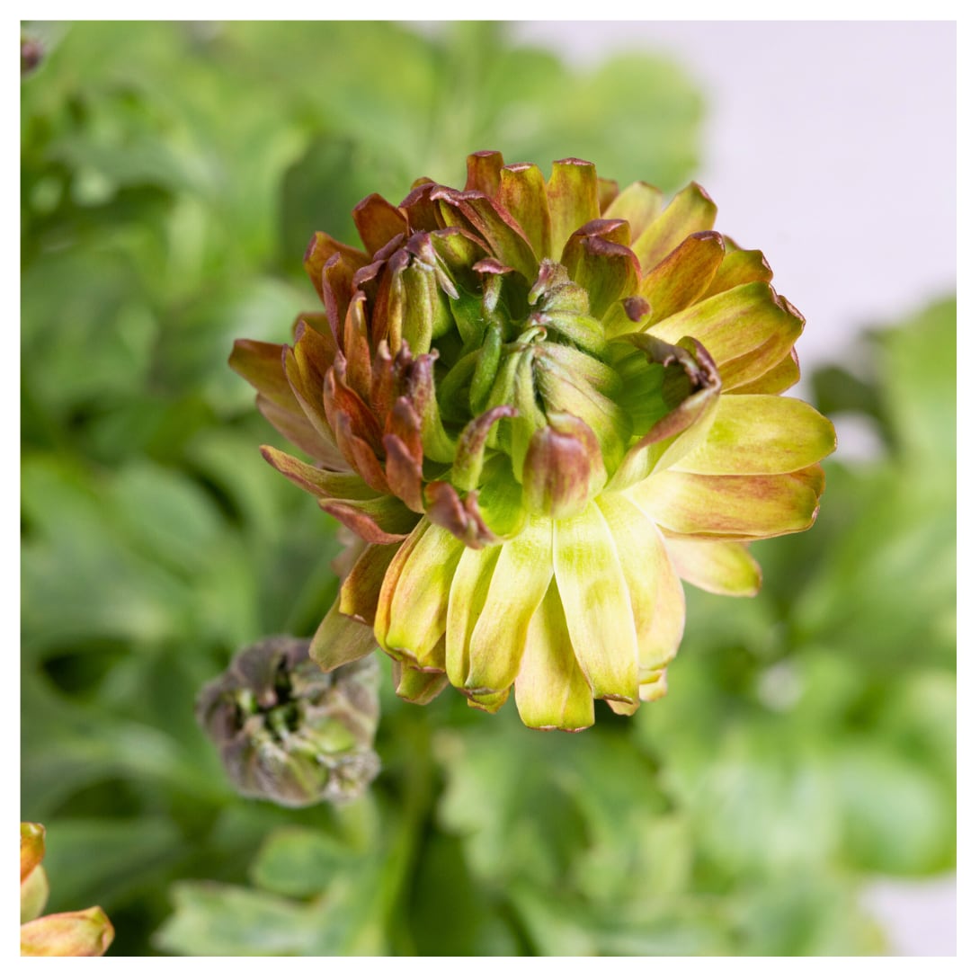 綾園芸の変わり咲きラナンキュラスアラクネは、グリーン~パープルのシックな