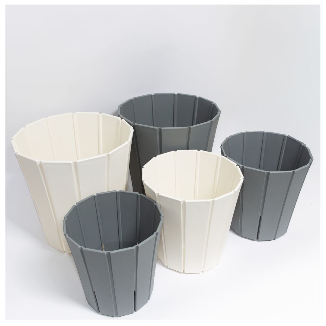 陶器鉢のような手触りと、シンプルで安定感のある寸胴型のフォルムで、植物の美しさを